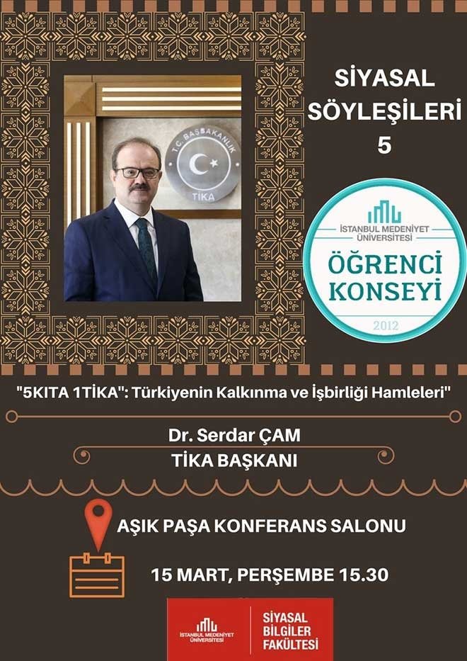Siyasal Bilgiler Fakültemiz ve Üniversitemiz Öğrenci Konseyi Başkanlığının birlikte düzenlediği Siyasal Söyleşilerinin beşincisi 15 Mart 2018 tarihinde yapılacaktır.