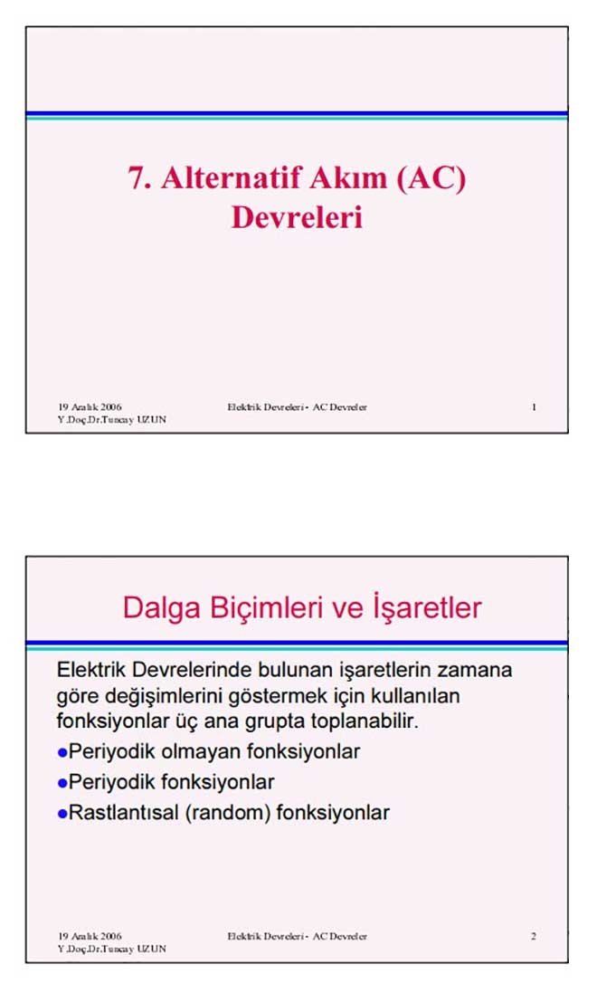 Yıldız Teknik Üniversitesi (YTÜ), Elektrik Elektronik Fakültesi, Yrd. Doç. Dr. Tuncay Uzun'un "Alternatif Akım (AC) Devreleri" ders notlarına sitemizden ulaşabilirsiniz.