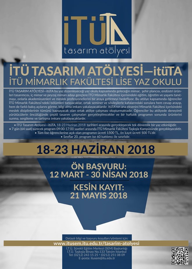 İTÜ Tasarım Atölyesi itüTA 18 Haziran- 23 Haziran 2018 tarihleri arasında tek dönemlik bir yaz etkinliğidir.