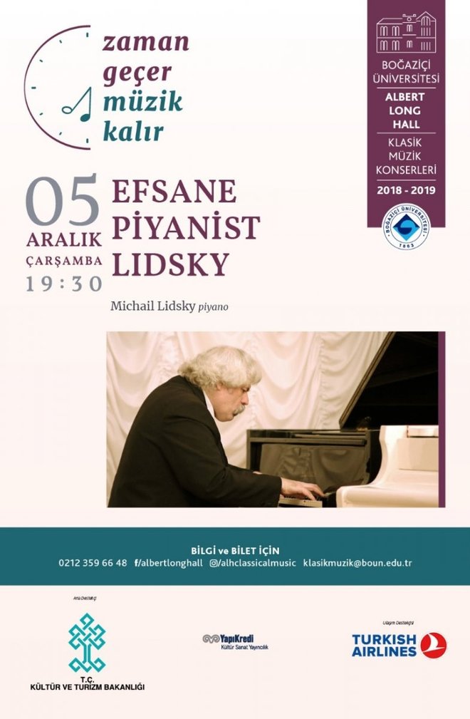 Boğaziçi Üniversitesi'nin dünyaca ünlü sanatçı ve topluluklarını ağırlayan, gelenekselleşen Albert Long Hall Klasik Müzik Konserleri 5 Aralık tarihinde dünyaca ünlü piyanist Mihail Lidsky'yi konuk edecek.