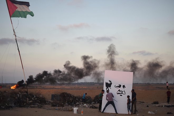 Gazze sınırında Filistinliler, Cumhurbaşkanı Recep Tayyip Erdoğan'ın seçimlerdeki başarısını ellerinde Türk bayrağı ve Erdoğan'ın fotoğrafını taşıyarak kutladılar.