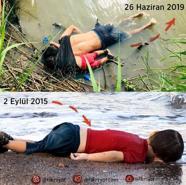 ABD-Meksika sınırındaki Rio Bravo nehrinde hayatını kaybeden El Salvadorlu Ramirez ve 2 yaşındaki kızı Valeria'nın görüntüsü, akıllara 2015'de Muğla'dan Yunanistan'a geçerken boğularak hayatını kaybeden Aylan bebeği getirdi.