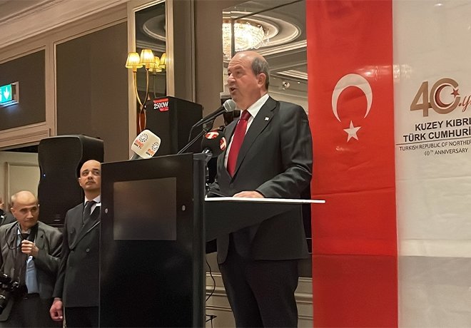 Tatar, resepsiyonda yaptığı konuşmada, KKTC'nin Doğu Akdeniz'de barış, güvenlik ve istikrarın anahtarı olduğunu belirterek, "Ana vatan, yavru vatan ve Mavi Vatan, birlikte geleceğe daha güçlü yürüyoruz." dedi.