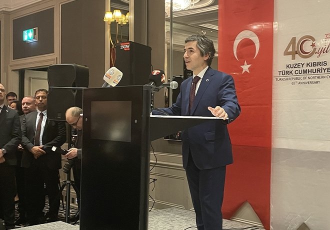 KKTC'nin Londra Temsilcisi Keskin de yaptığı konuşmada, "2021'de Cenevre'de kayda geçirdiğimiz egemen eşitliğe dayalı iki devlet vizyonumuzu kararlılıkla sürdürmeye ve devletimizi her alanda daha da ileri taşımaya, Türkiye'nin de koşulsuz desteğiyle devam ediyoruz." dedi.