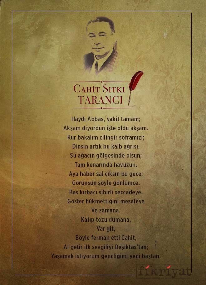 Otuz beş yaşı yolun yarısı saydı, ömrünü tamamlayamadan 46 yaşında hayattan ayrıldı. Kendini çirkin gördü kimseyi sevemedi. Beşiktaşlı kız ve Cavidan Tınaz hayatının iki büyük sevdasıydı. Soylu bir ailenin oğluydu. Büyük makamların koltuk sevdasına değil, edebiyatın naif dünyasına kendini kaptırdı. Cahit Sıtkı Tarancı... Türk edebiyatının önde gelen bir şairi…