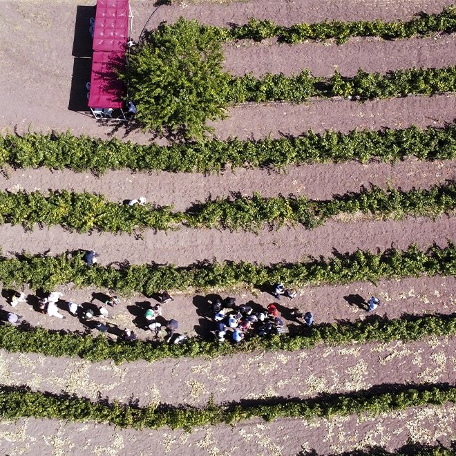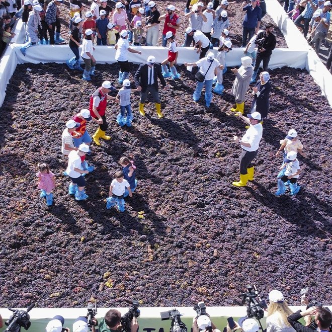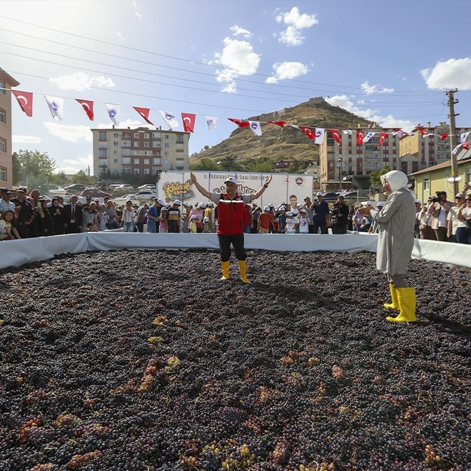 Kirişci, buradaki bir havuzda şıra yapımı için bekletilen üzümleri, Ankara oyun havası eşliğinde, çocukların da dahil olduğu bir kalabalıkla çiğnedi.