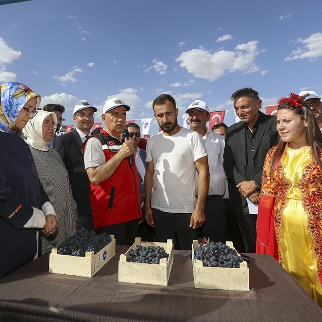 Bakan Kirişci, festival kapsamında en kaliteli üzüm yarışmasında dereceye giren üreticilere de hediye takdim etti.