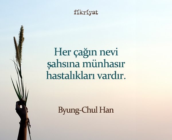 Her çağın nevi şahsına münhasır hastalıkları vardır. (…) Hastalık veçhesinden bakılacak olursa, başlamakta olan 21. yüzyıl ne bakteriyel ne de viral; bilakis sinirsel (neural) olarak belirlenmiştir. Depresyon, dikkat eksikliği ve hiperaktivite bozukluğu (DEHB), sınırdaki kişilik bozukluğu (SKB) veya tükenmişlik sendromu (TS) gibi sinirsel hastalıklar başlamakta olan 21. yüzyılın patolojik manzarasını tayin etmektedir. Bunlar kesinlikle bulaşıcı değildir. Bilakis, bağışıklık açısından yabancı olanın olumsuzlanmasından ziyade ifrat derecesindeki olumlanmasından ileri gelen tıkanmalardır.
