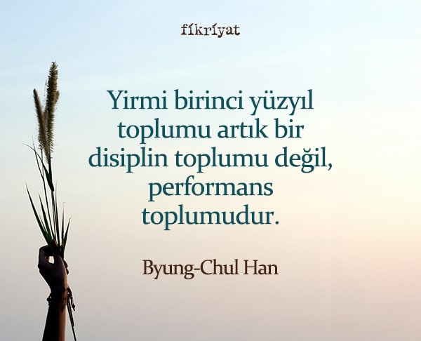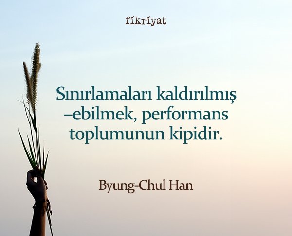 Sınırlamaları kaldırılmış –ebilmek, performans toplumunun kipidir. Tasdik etmenin topluluk ismi olan "Yes, we can" ("Evet, yapabiliriz") performans toplumunun pozitif karakterini dile getirir. Yasak, emir veya kaidenin yerini proje, girişim ve motivasyon alır.(…) Disiplin toplumunun negatifliği deliler ve caniler doğurmuştur. Performans toplumuysa depresif ve mağluplar yaratır.