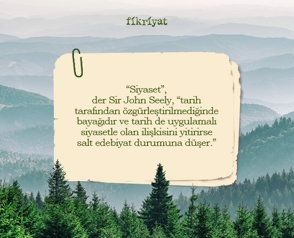 "Siyaset", der Sir John Seely, "tarih tarafından özgürleştirilmediğinde bayağıdır ve tarih de uygulamalı siyasetle olan ilişkisini yitirirse salt edebiyat durumuna düşer."