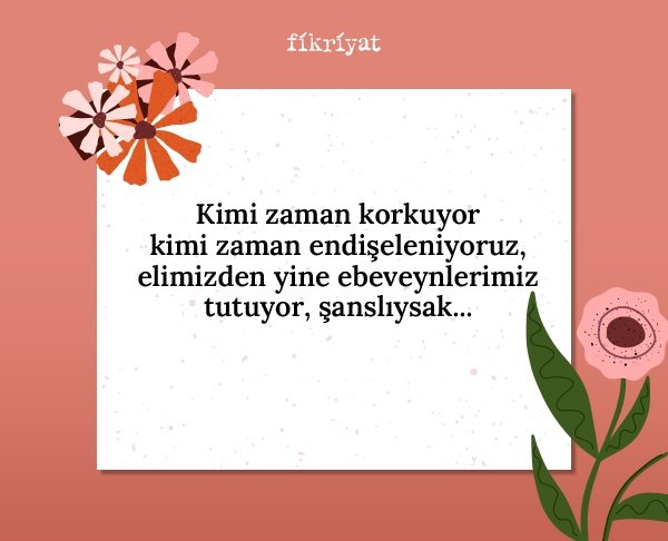 🔹 "Şanslıysak" diyorum çünkü elimizden tutan bir anne babamızın olması demek, bebeklik ve çocukluk dönemlerimizin temellerinin düzgün atılması anlamına da geliyor bir nebze.