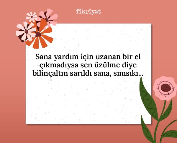 🔸 Sana yardım için uzanan bir el çıkmadıysa sen üzülme diye bilinçaltın sarıldı sana, sımsıkı... İyilik mi etti kötülük mü belki hala anlamıyorsun bile.