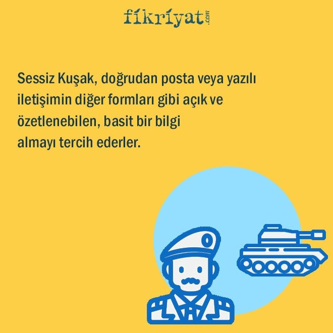 💠 Sessiz Kuşak, doğrudan posta veya yazılı iletişimin diğer formları gibi açık ve özetlenebilen, basit bir bilgi almayı tercih ederler.