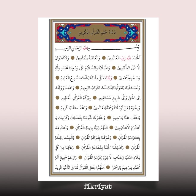 Allah'ım! Bizi Kur'ân süsü ile süsle. Kur'ân ile bize lütfet! Kur'ân ile bizi şereflendir. Kur'ân elbisesini bize giydir. Kur'ân hürmetine bizi cennetine koy. Kur'ân hürmetine dünyadaki belalardan ve âhiret azabından bizi koru. Ey Rahim, Ey Rahman! Ümmet-i Muhammed'in tamamına merhamet et.