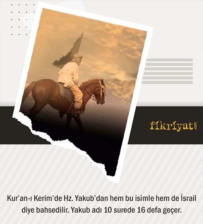 🔸 Peygamberlerden olan Hz. İshak'ın oğlu olan Hz. Yakub, mukaddes kitabımız Kur'an-ı Kerim'de peygamber olarak bildirilmiştir.