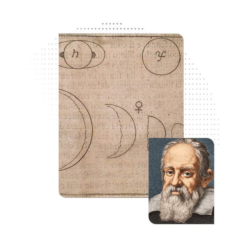 Galileo, gelgitlerin varlığını Dünya'nın hareket ettiğinin bir göstergesi olduğunu ileri sürdü. 1619 yılında kuyrukluyıldızlarla ilgili gözlemlerde bulundu. 1632 yılında, yaşlı bir adam olmasına rağmen, Kilise'nin yasağına rağmen Güneş'in merkezde olduğunu savunduğu "İki Dünya Sistemi Üzerine Diyaloglar" adlı kitabını yayınladı. Galileo, Venüs'ün ay gibi evreler geçirdiğini gözlemledi. Güneş merkezli modelin perspektifine göre, Venüs'ün güneş etrafındaki yörüngesi nedeniyle tüm evreleri gözlemlemek mümkün oluyordu; bu evreler, Venüs'ün dünya üzerinden görülen aydınlık yüzünün değişmesiyle ortaya çıkıyordu. Ayrıca, Kepler Süpernova'sını gözlemlemiştir.