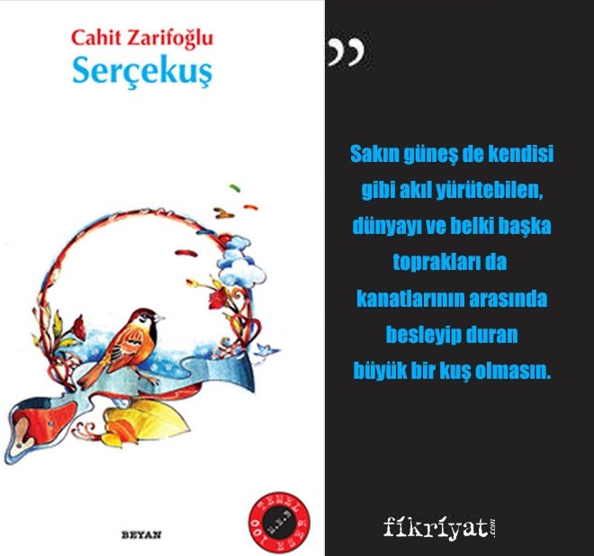 🔶Zarifoğlu, diğer kitaplarında olduğu gibi, kuş motifi ve kahramanı üzerinden bu şiirselliği kurgulamıştır. Bu kuş, hikmetli sözler söyleyen, tabiatı anlayıp yorumlamaya çalışan, varoluş sırrına ermeye meraklıdır.