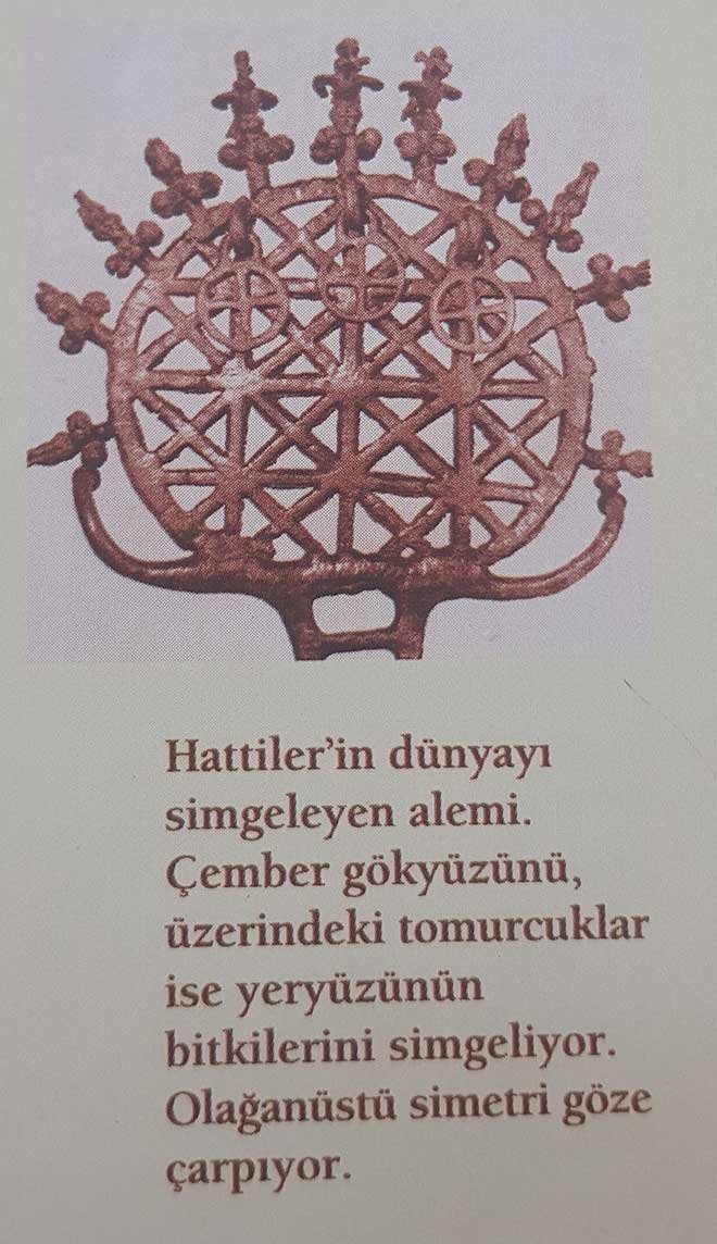 Alacahöyük'te çıkarılan eserler arasında bulunan güneş kursları ise tipik Hatti karakterini yansıtır. Hattiler 'in en çok oluklu, kafes ve ızgara bezemeleri, kabarık nokta dizileri, eşmerkezli ve ortaları noktalı daireler kullandığı görülür. Kafes ve ızgara biçimindeki bezemelere daha sonra Hititler'de çok sık rastlanır.