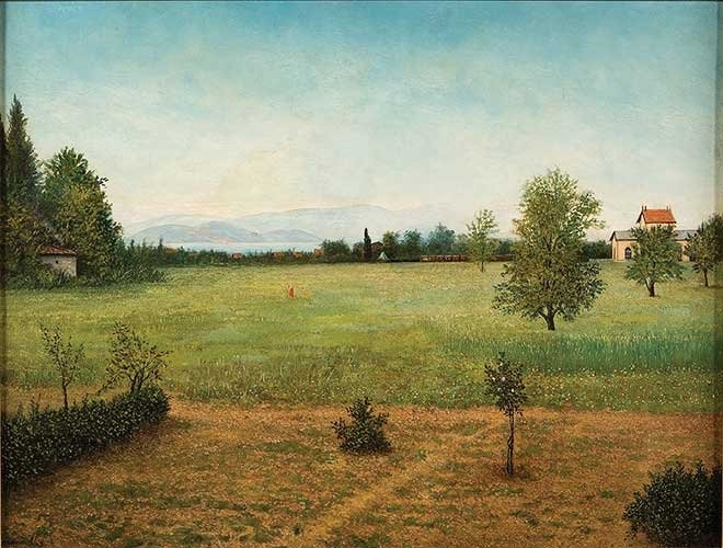 Manzaralarında çoğunlukla toprak renkleri ve yeşilin tonlarının ağırlık kazandığını görürüz. Bazı resimlerinde bir eşeğin semerinde, bir evin çatısında ya da çiçeklerde kırmızı lekeler kullanarak manzaralarına canlılık verir. "Kuğulu Göl" mavi tonlarının ağırlıklı olduğu bir manzara resmi olarak dikkat çeker.