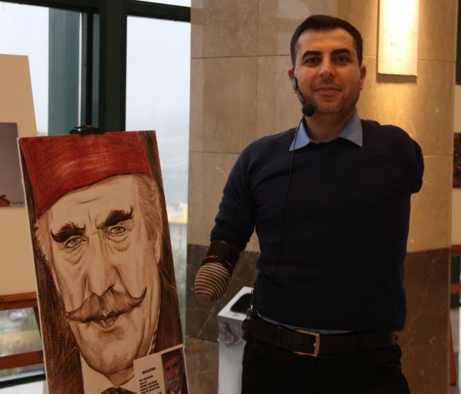 Iğdır'da, 6 yaşında elektrik akımına kapılarak 2 kolunu kaybeden ve hayata tutunmak için yollar ararken resim yeteneğini keşfeden 32 yaşındaki Yusuf Akgün, Yeşilçam'ın ünlü isimlerinin portreleriyle dikkati çekiyor.