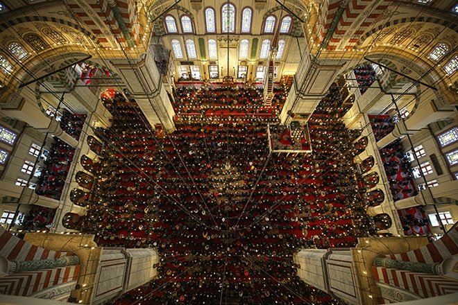 İstanbul'da, en çok ziyaret edilen selatin camileri arasında bulunan Eyüpsultan, Süleymaniye, Pertevniyal, Fatih ve Mihrimah Sultan camilerini, AA fotomuhabiri Kadir Gecesi dolayısıyla balıkgözü objektif ile görüntüledi.