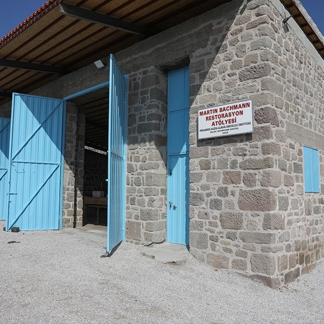 Alman Arkeoloji Enstitüsü Müdürü ve Kazı Heyeti Başkanı Prof. Dr. Felix Pirson da Bergama'nın antik mimarisinin önemli bir miras olduğunu, hem Helenistik hem Roma Dönemi hem de sonrasındaki dönemlerden kalan eserlerin restorasyon çalışmalarını özenle yürüttüklerini söyledi. Antik kentte henüz çok gençken işe başlayan Selim Baskın'ın bugün baş usta olarak yeni öğrencilere eğitim verdiğini aktaran Pirson, eğitimlerin ve çalışmaların da uzun yıllar Bergama kazılarında görev yaptıktan sonra 56 yaşında Türkiye'de hayatını kaybeden Alman mimar Martin Bachmann'ın adını taşıyan atölyede gerçekleştirildiğini anlattı.