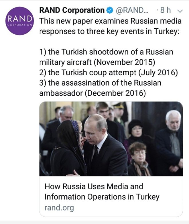 İşte ABD tarafından yapılan güncel bir "spin doctor" faaliyeti. Amerikan gizli servisi CIA'nin "gölge kuruluşu" olarak bilinen Rand Corporation isimli think-tank kuruluşunun bir çalışması. ABD'nin nasıl ortalığı karıştırdığını saklamak için 3 olayla Türkiye üzerinden Rusya'yı hedef gösteriyor. Rand raporuna göre ABD ile Türkiye arasını açan Rusya. Buna göre Rus medyası, karşılıklı şüpheciliği arttırarak ve politika farklılıklarını vurgulayarak, ABD ve Avrupa ile Türkiye'nin ve güvenlik işbirliğini zayıflatmaya çalışıyor. 15 Temmuz FETÖ'cü hain darbe girişiminin arkasında olduğu ortaya çıkan ABD'nin "spin doctor" operasyonu Rand Corporation'un araştırmasıyla daha net anlaşılıyor. Raporda, 3 kritik olaydan söz edilerek Türkiye'nin NATO'dan ve Batı'dan kopmasında Rus medyası suçlanıyor.