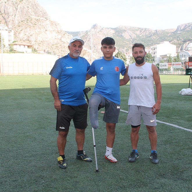 Amasya'da lokomotifin çarpması sonucu sağ ayağı kesilen, daha sonra protez bacak takılan 15 yaşındaki futbolcu Eren Bulut, Ampute Genç Milli Takımı'na