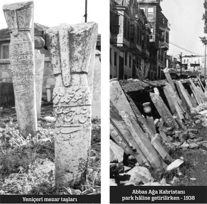 Vakıf esere, kimsenin müdahale edememesi umumi bir hukuk kaidesi iken, Jön Türklerin iktidara gelişinin ardından, başta İstanbul olmak üzere Osmanlı şehirlerinin hemen hepsinde tarihî vakıf mezarlıkları talan edildi. Cumhuriyet devrinde bu furya hızla sürdü. Hatıralardan Osmanlı'yı silmek üzere, kabristanlar üzerine parklar, binalar, depolar, yollar yaptırıldı. Mezar taşları sökülerek kırıldı veya adi işlerde kullanıldı. Asırlık serviler kesilerek odun yapıldı.