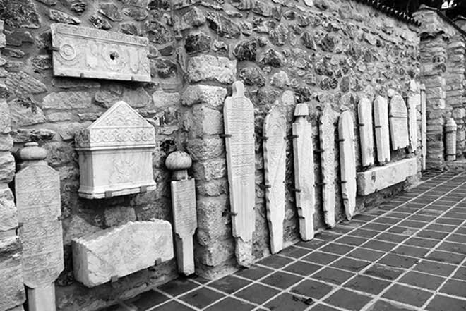Mevtanın cinsiyetini, sosyal statüsünü gösteren sembollerle işlenmiş mezar taşları, eski tabirle şâhideler, uzun bir tarihin canlı şahitleri; şehirlerin mermerden süsleridir. Hanımların, şâhidesi çiçeklidir. Erkekler yerine göre fesli, sarıklı, külahlıdır. Görenleri, düşündürüp hüzünlendiren, bazen de tebessüm ettiren nişânelerdir. Kasımpaşa mezarlığındaki bir mezartaşı bu kabildendir: "Bir zamanlar ben de Süleyman idim/Ateşe körüğe hükümran idim/Sanmayın Sultan Süleyman idim/Tersânede Körükçü Süleyman idim."