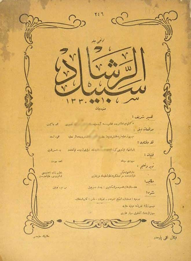 Ahmed Naim, "Ahlak", Sebîlürreşâd, II-IX/ 48-230, s. 381, 29 Safer 331/24 K. Sânî 328.