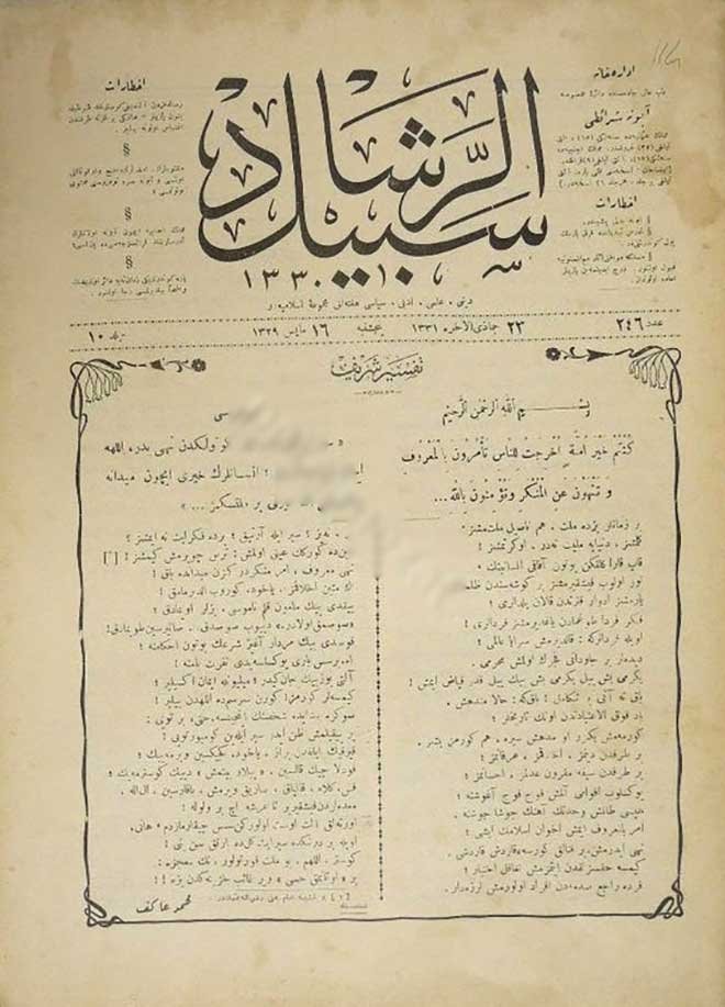 Mehmed Akif, "İkinci Meviza", Sebîlürreşâd, II-IX/49-231, s. 390, 7 R. Evvel 331/31 K. Sânî 328.
