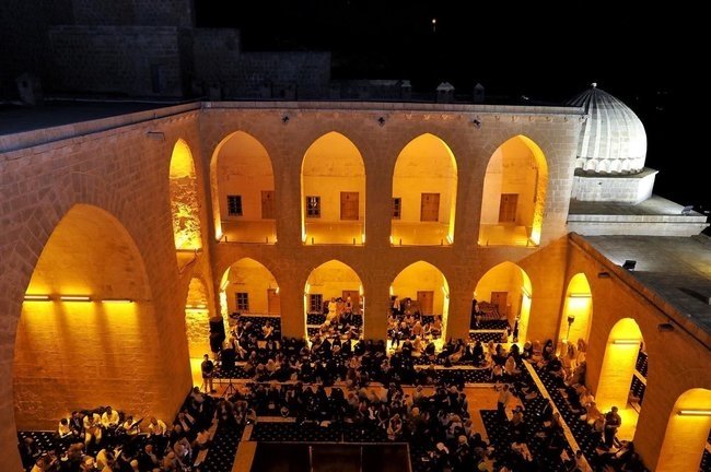 Tarihi Kasımiye Medresesinin avlusunda havuz başında gerçekleşen program, çalıştay sebebiyle Mardin'de bulunan akademisyen ve medrese alimleri ile tüm katılımcılara unutamayacakları bir gece yaşattı.