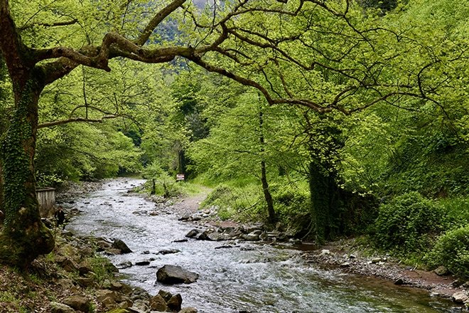 Sakarya'nın Kocaali ve Karasu ilçeleri arasındaki Maden Deresi'ne hakim olan ilkbahar renkleri, ziyaretçilerine yeşilin tonları ve suyun ahengi eşliğinde doğayla iç içe vakit geçirme imkanı sunuyor.